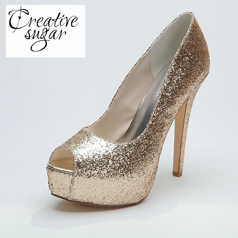 Creativesugar Ladies High Heel Platform Pumps Open Toe Gold Silver