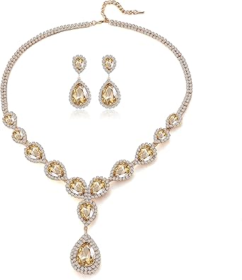 Paxuan Womens Silver Gold Plated Teardrop White Champagne Crystal