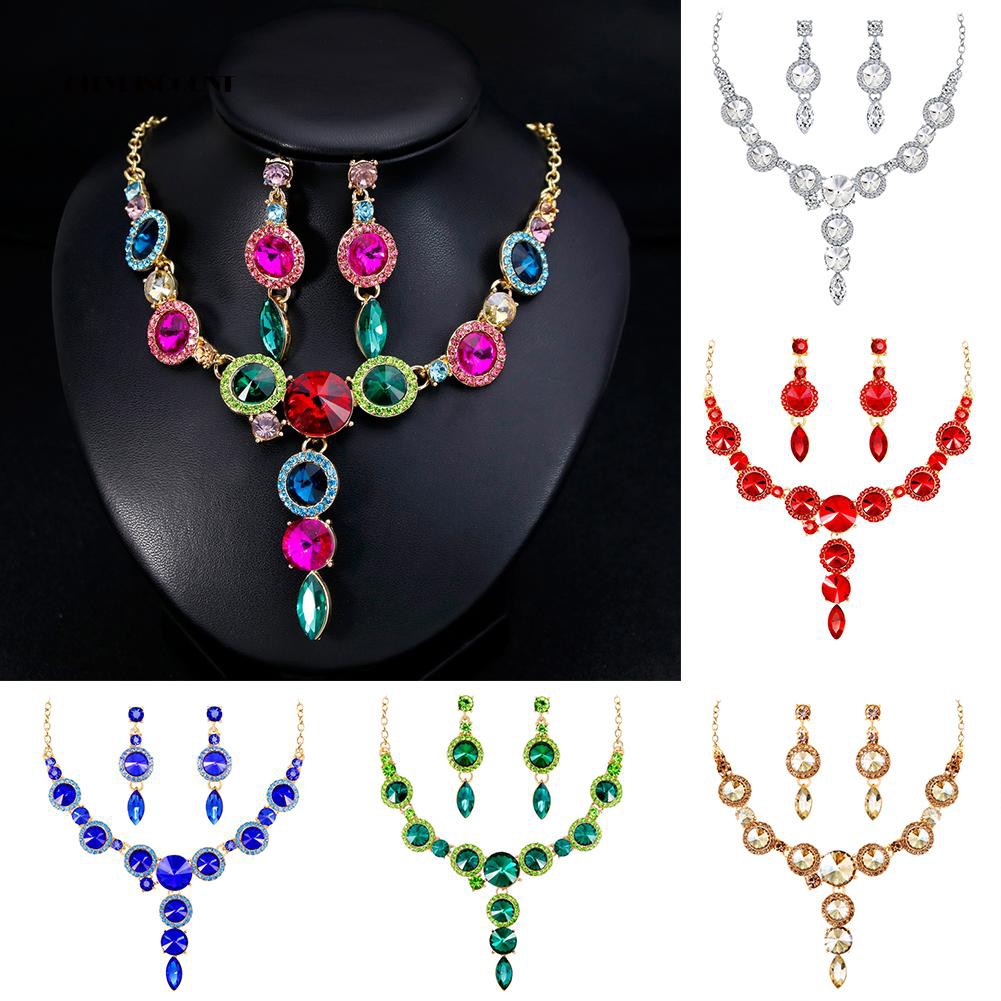 Buy 2pcs Women S Necklace Earring Set Fashion Rhinestone Alloy