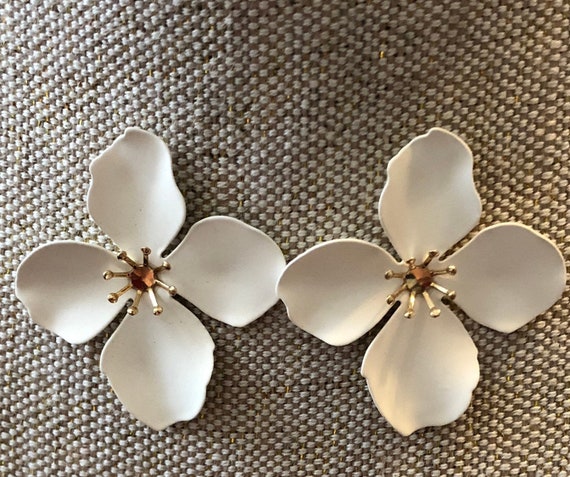White Flower Earrings Wedding Earrings Wedding Jewelry Etsy
