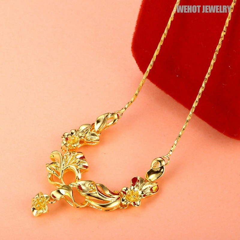 Fashion 24k Gold Flower Pendant Necklace Women Birthday Wedding