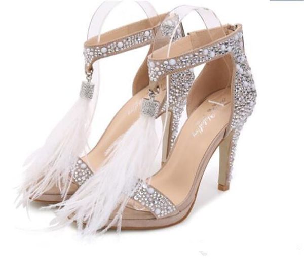Rhinestone Feather High Heels Shoes Crystal Sandals Women Summer