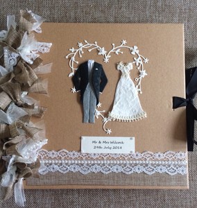 Personalised Rustic Wedding Album Guestbook With Burlap Lace