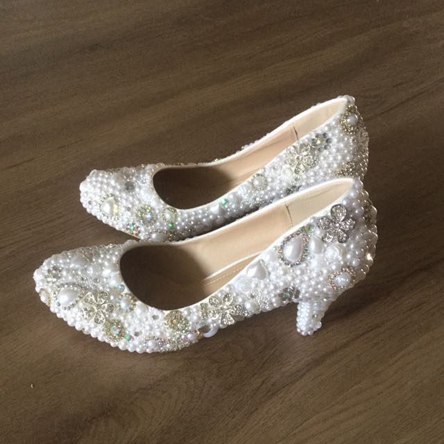Size 39 Bridal Pearl Beautiful Diamond Princess Short Heels