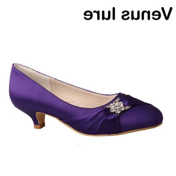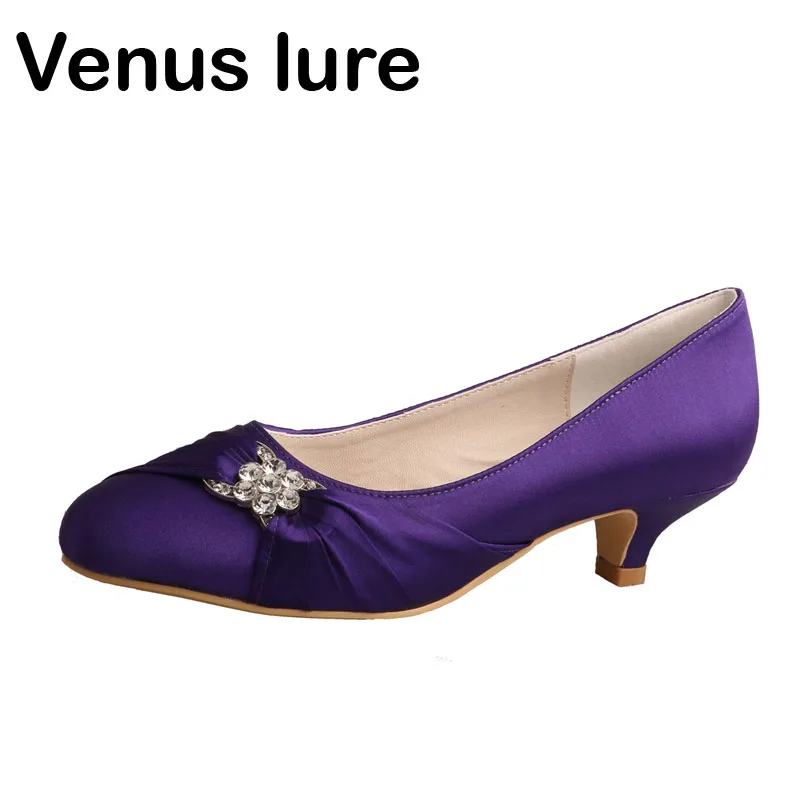 Peep Toe Satin Purple Low Heel Wedding Shoes