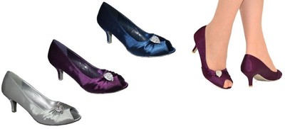 Ladies Silver Navy Purple Evening Wedding Party Low Heel Peep Toe