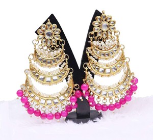 Indian Bridal Pink Long Earrings Set Bollywood Ethnic Women