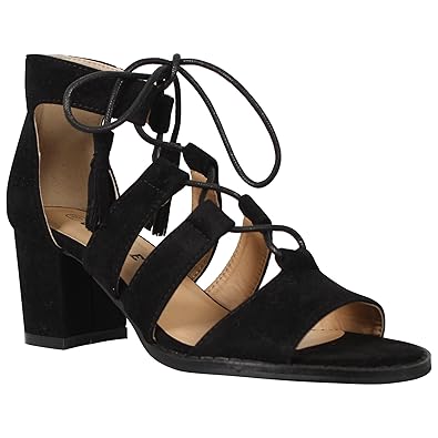 Girls Kids Children Cut Out Block Heel Faux Suede Lace Up Sandals