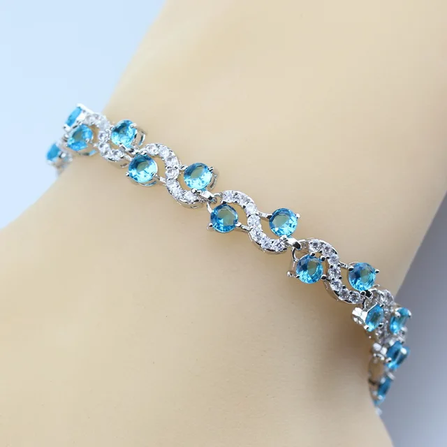 2017 New 925 Silver Color Link Chain Bracelet Light Blue White