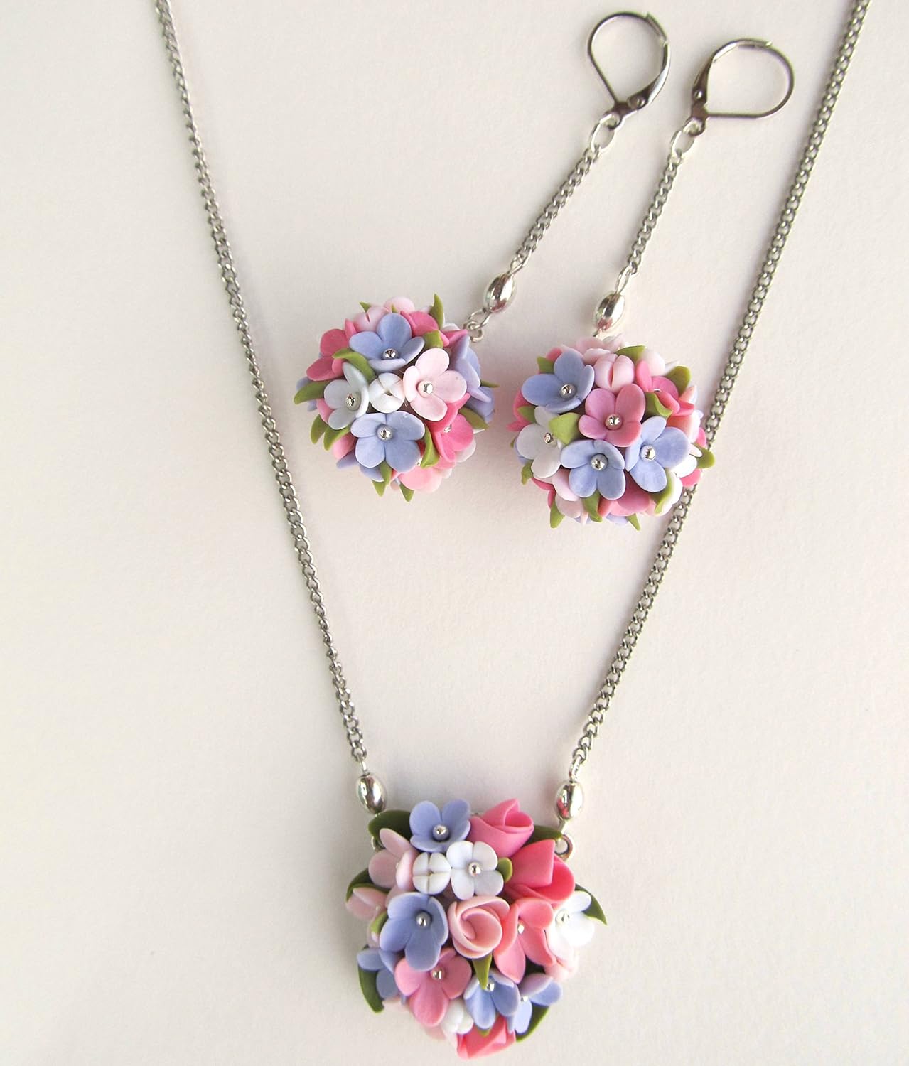 Amazon Com Handmade Bridal Floral Pendant Necklace Pink Light