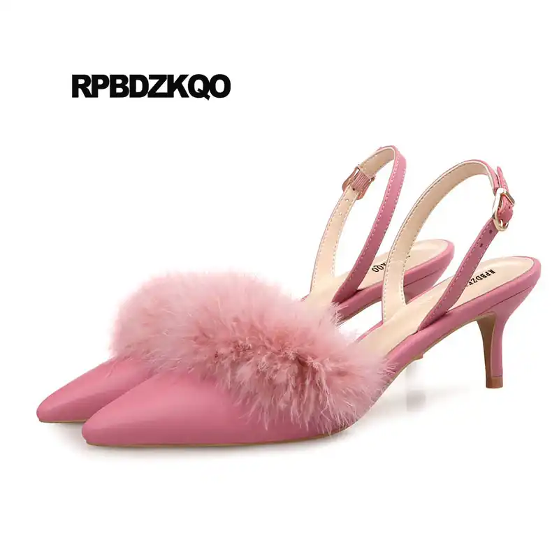 Pumps Sweet 2018 Nude Fur Kitten Sandals Slingback Pointed Toe
