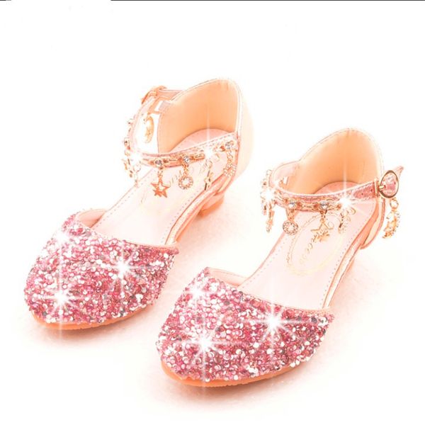 Children Girls Spring High Heels Sequins Princess Dress Shoes For