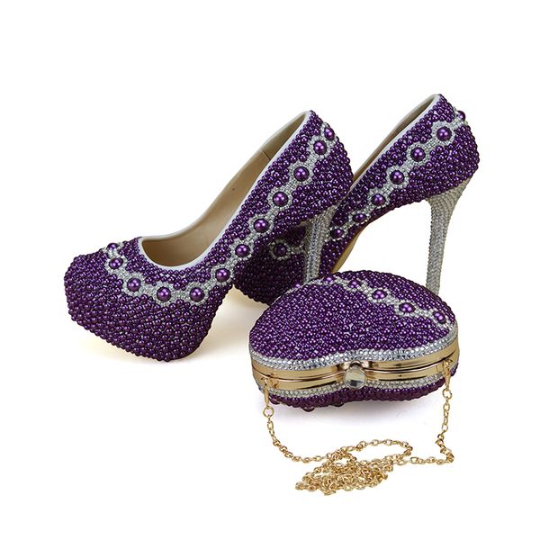 2018 Newest Design Purple Pearl Bridal Wedding Shoes With Lovely