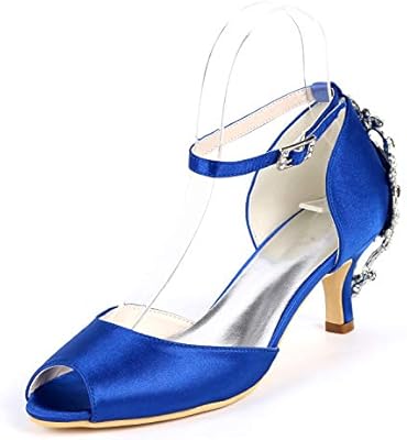 Royal Blue Satin Open Toe Rhinestone Back Wedding Shoes Pumps