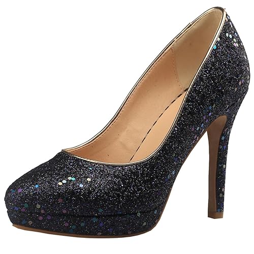 Dark Blue Sequined Stiletto Heel Bridal Wedding Shoes Divas Fashions