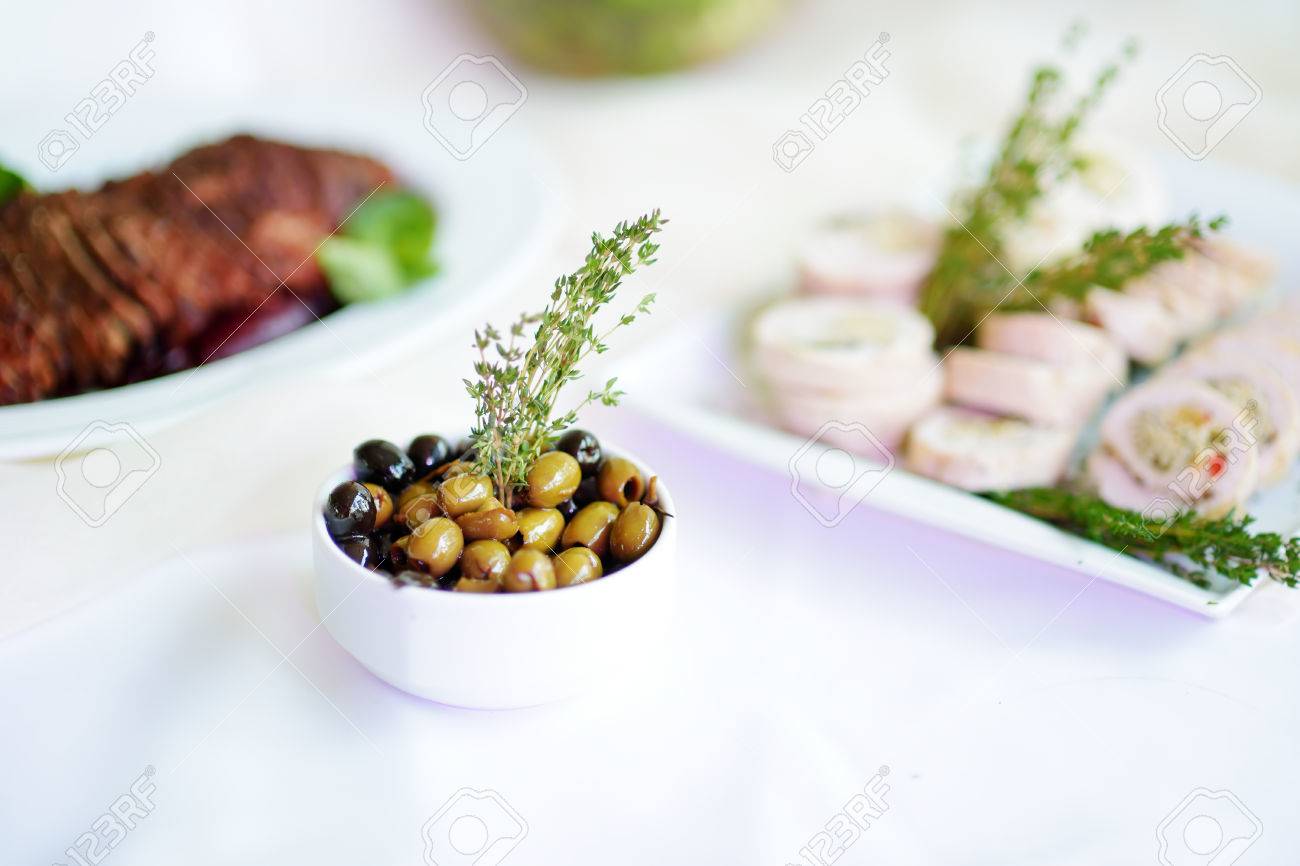 Delicious Olives Served On A Party Or Wedding Reception Plates