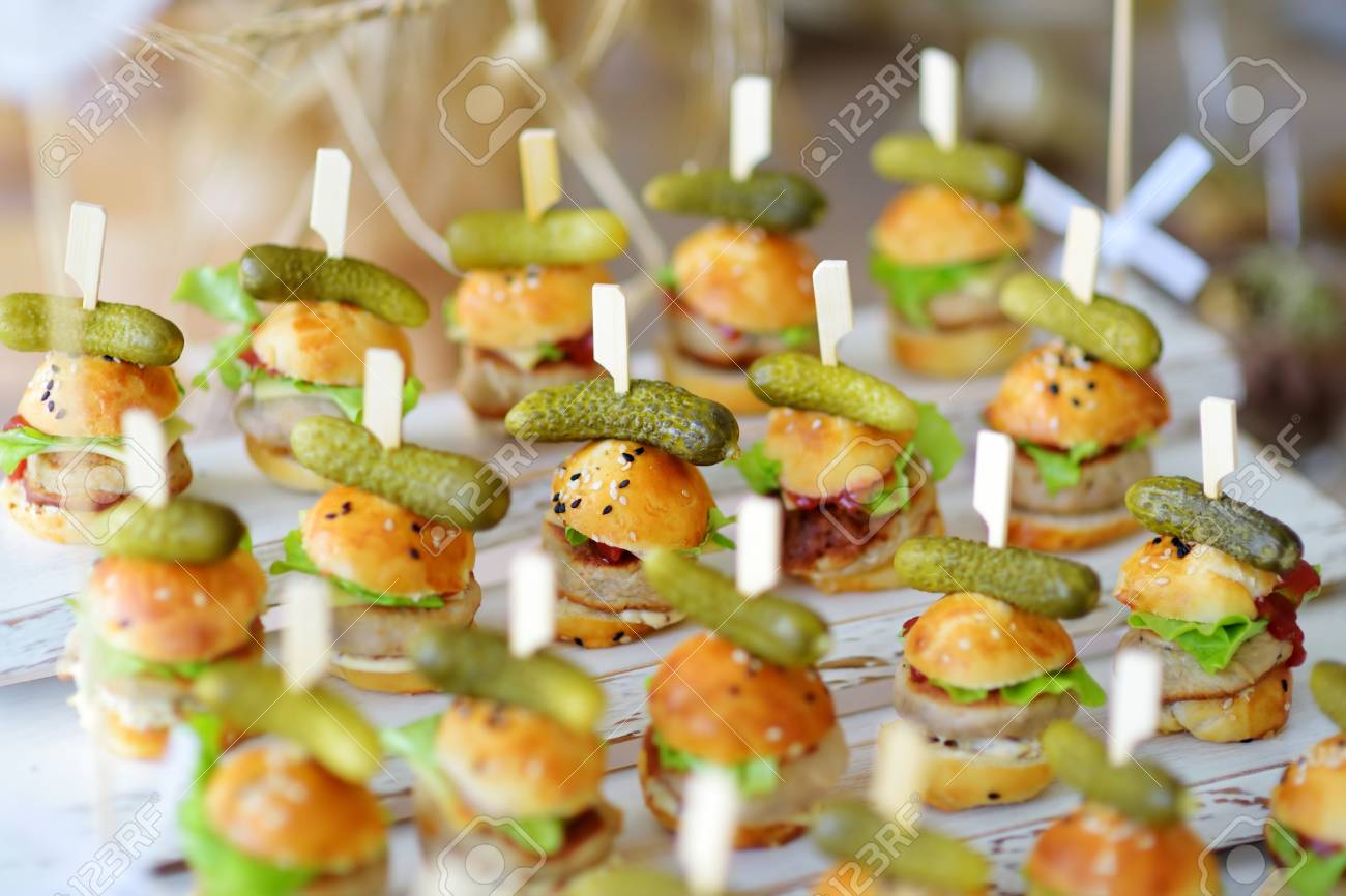 Delicious One Bite Mini Burgers Served On A Party Or Wedding