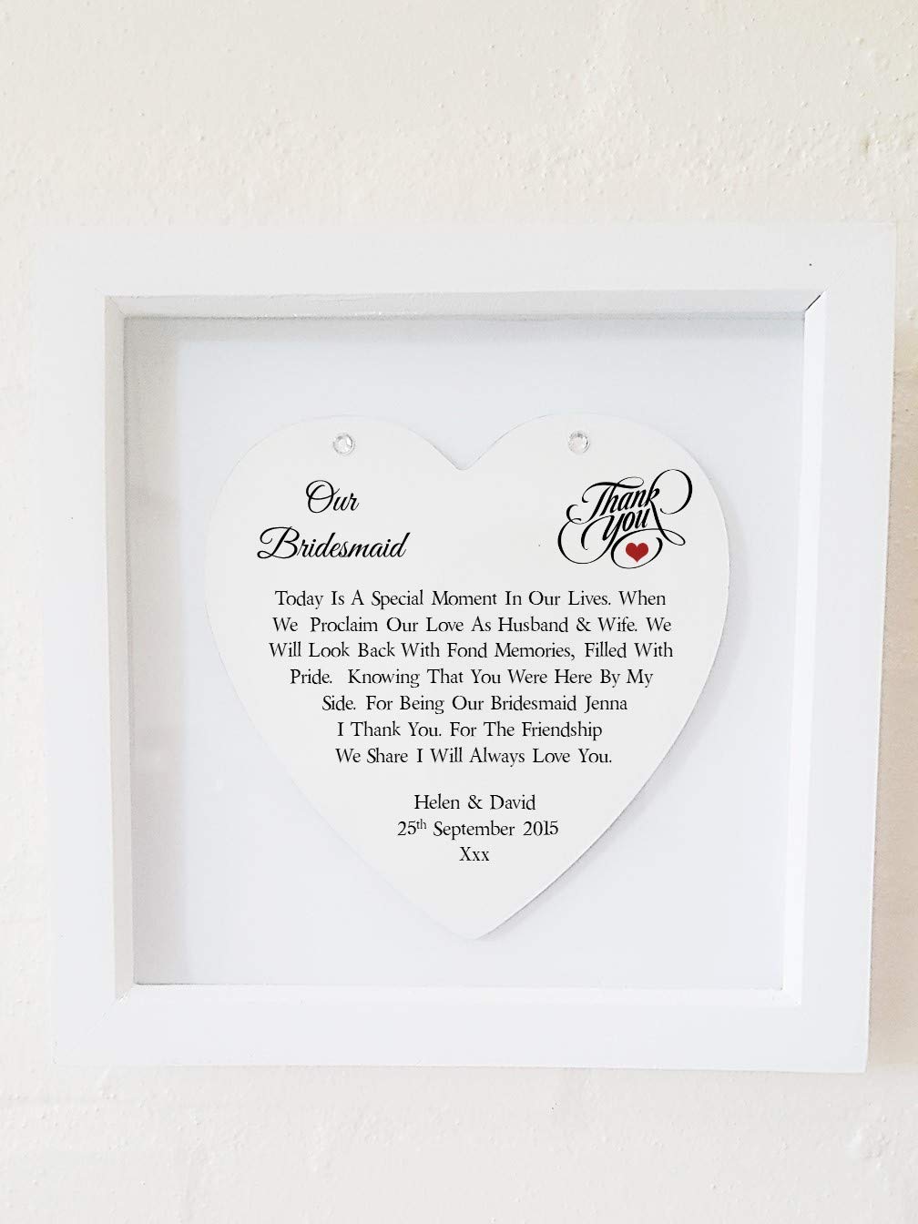 Personalised Bridesmaid Friendship Wedding Poem Thank You Framed