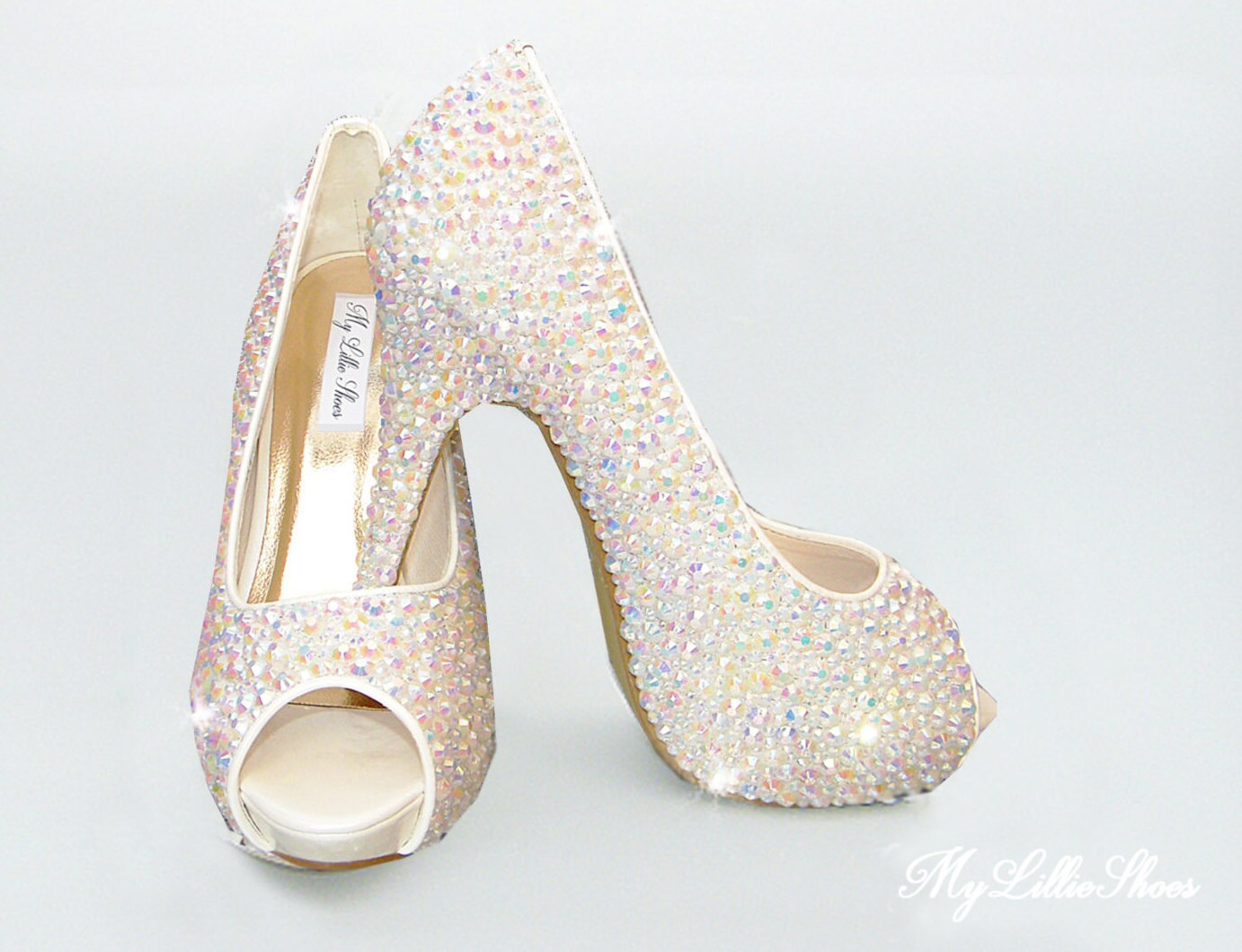 Peep Toe White Rhinestone High Heels Wedding Bridesmaid Prom Etsy