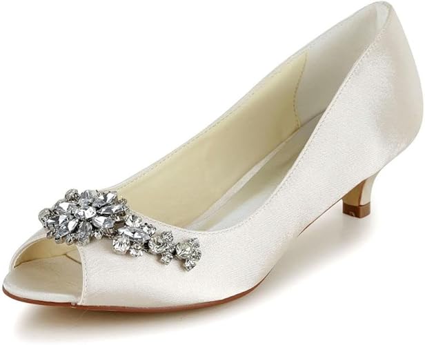 Women S Satin Kitten Heel Peep Toe Sandals Wedding Shoes
