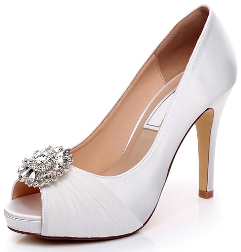 Women S White Peep Toe Rhinestone Stiletto Heel Pumps Bridal Heels