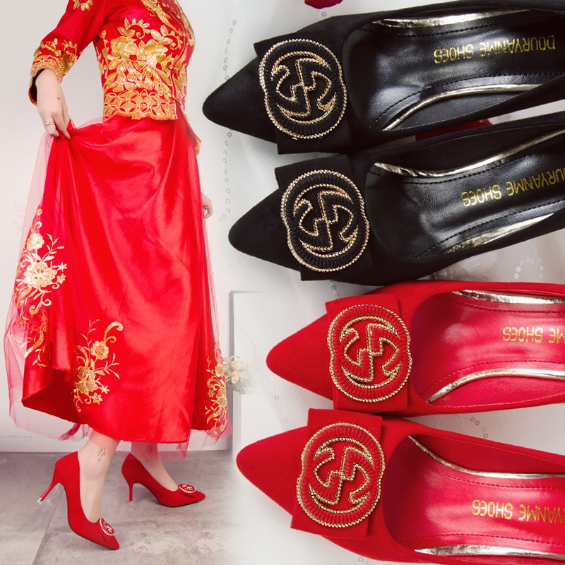 Man Made Diamond Married Shoes Female Pointed Bride Shoes Red High