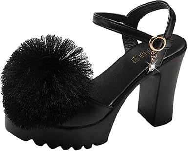 Dener Women Ladies Platform Wedge Sandals Chunky Heels Pom Poms
