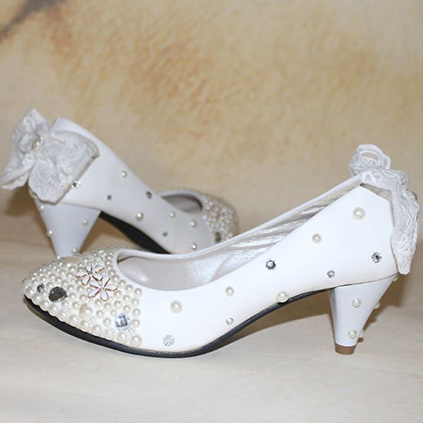 White Appliqued 2 Inches Middle Heel Sapatos Femininos Shoes Women