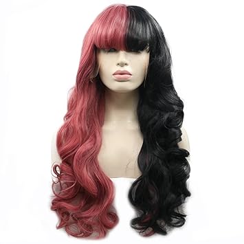 Amazon Com Half Black Half Red Lace Front Wig With Bangs