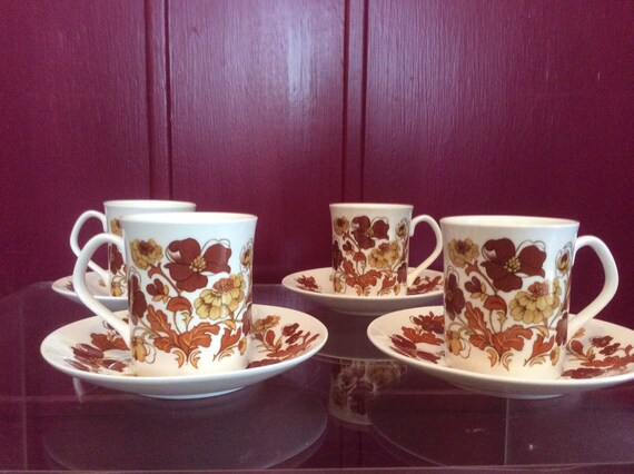 Elizabethan Meadow Flower 4 Teacups And Saucers Brown 1960s Etsy