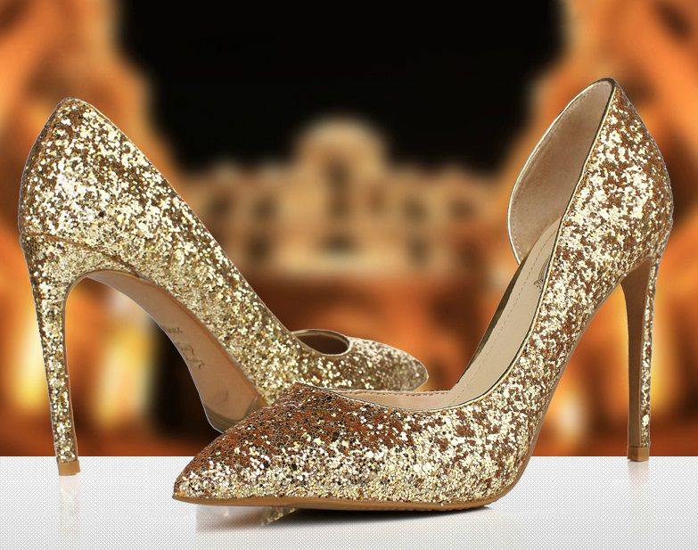 High Heel Wedding Shoes Golden Bridal Sandals Glitter Party High