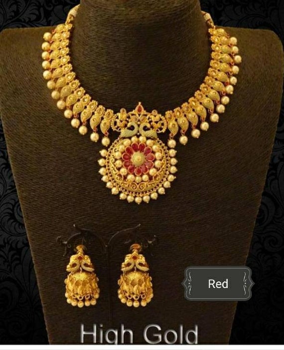 Traditional Gold Necklace Indian Jewelry Set Pakistani Etsy