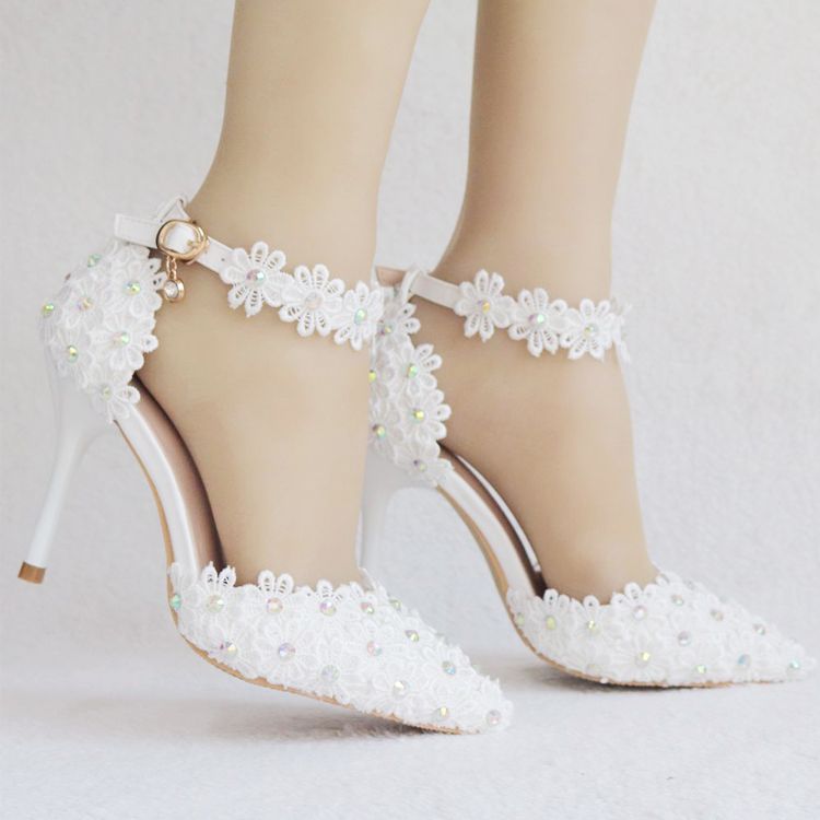 White Wedding Shoes Fashion Designer Heels Elegant Lady Pointed