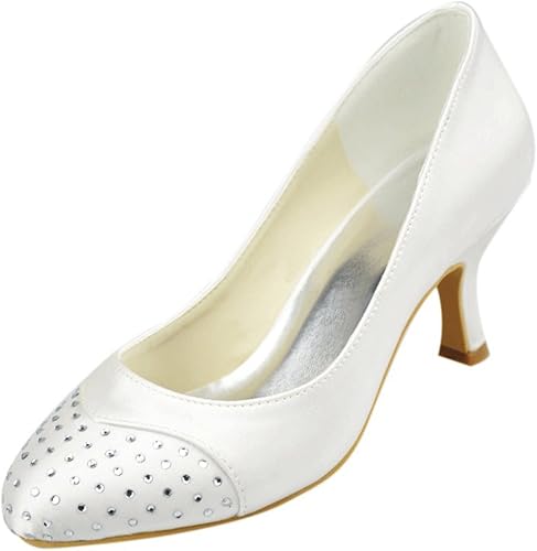 Amazon Com Minishion Girls Womens Med Heel Crystals Satin Bridal