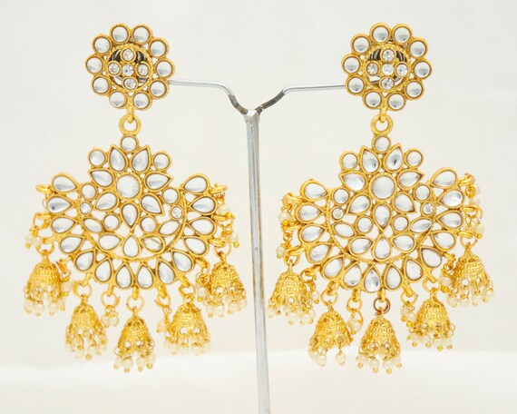 Jhumki Style Earrings Ghanti Kundan Dangler Party Wear Bridal Etsy